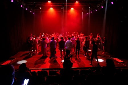 Una festa on impera el sentiment de pertinença a un col·lectiu efímer i tothom espera passar-ho bé. A partir del seu llibre homònim, Oriol Sauleda fa de mestre de cerimònies d’aquesta festa de la paraula, la música i la dansa esdevinguda espectacle, on es convoca el públic a deixar-se anar en un trànsit reparador a ritme de techno, salsa, psytrance, bossa nova o swing. Una patxanga? Un guateque? Potser només un pretext per no oblidar que aquí hem vingut a viure.